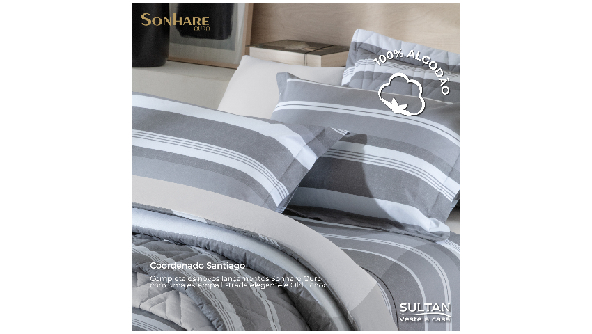KIT COBRE LEITO QUEEN SANTIAGO SONHARE OURO 2,45MX2,60M