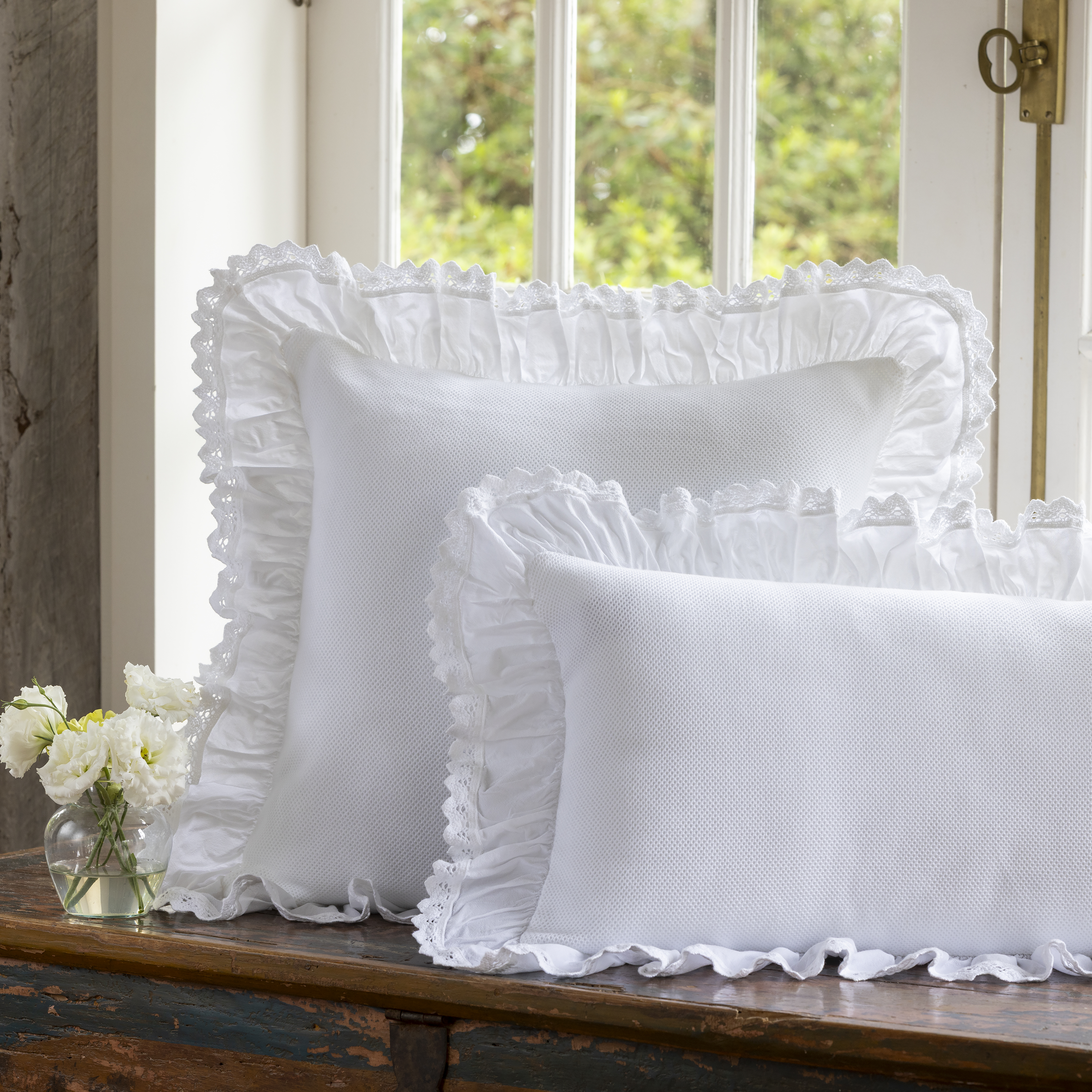 Capa de Almofada Jacquard Babado Branco