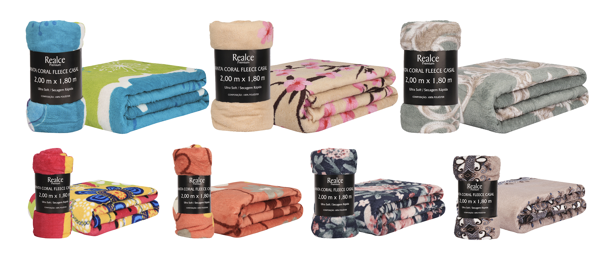Realce - Cobertores e Coberdrons - Manta Estampado Coral Fleece (180g/m)
